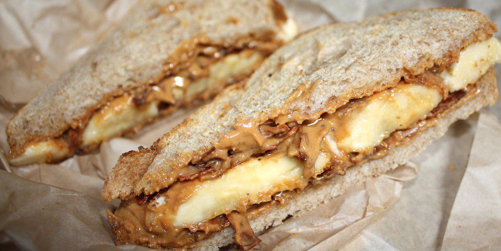 For this one, you'll need your favorite bread, natural peanut butter and a banana. Coconut bacon is a great option also. Dark chocolate can also be shredded to be placed on top. Mmm.