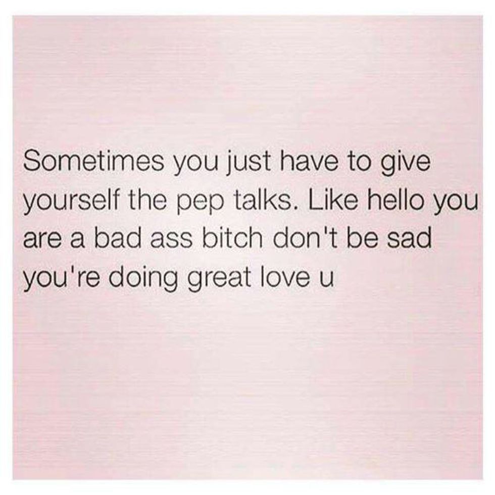 11. "Sometimes you just have to give yourself the pep talks. Like, hello, you are a bas ass b*tch, don't be sad, you're doing great, I love you." -Unknown
