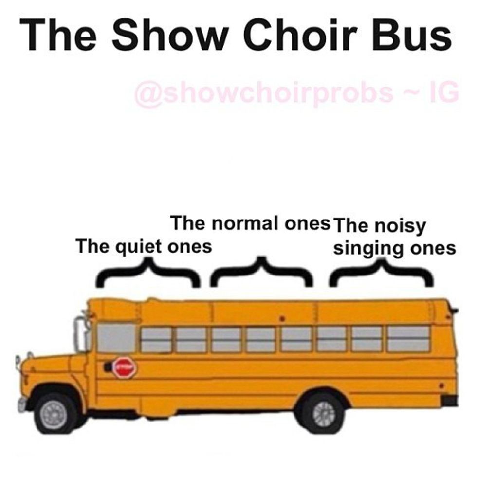 "Wait, so show choir is actually dancing and not just swaying back and forth and snapping?" Let's put it this way, we hire a choreographer from New York. And dance for five songs. Like I mentioned above, CARDIO. Show choir is just chorus and the dance team combined. Chin pops, chin pops, chin pops...I think those two words were reiterated in my brain that sometimes I still get nightmares of my choreographer yelling it in my face. And ripples were the death of us; God forbid we had to hold that position for TEN MINUTES ONCE just because someone ~had moved~ one inch. Smh.