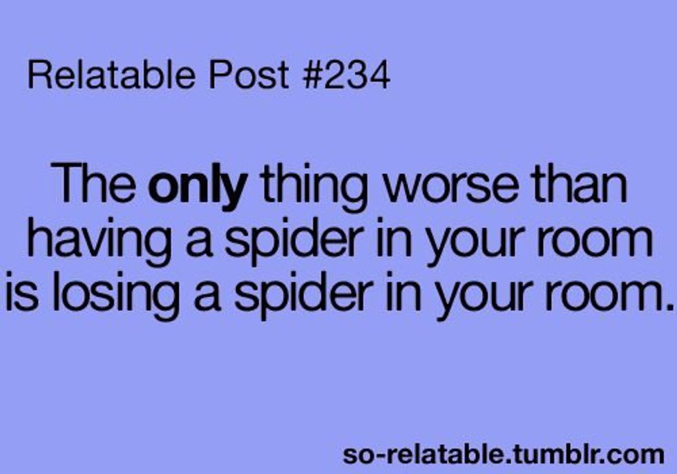Then, suddenly you’re extremely dependent on your mom, dad, family member, significant other, neighbor, random person who’s creepy but not as creepy as the spider.