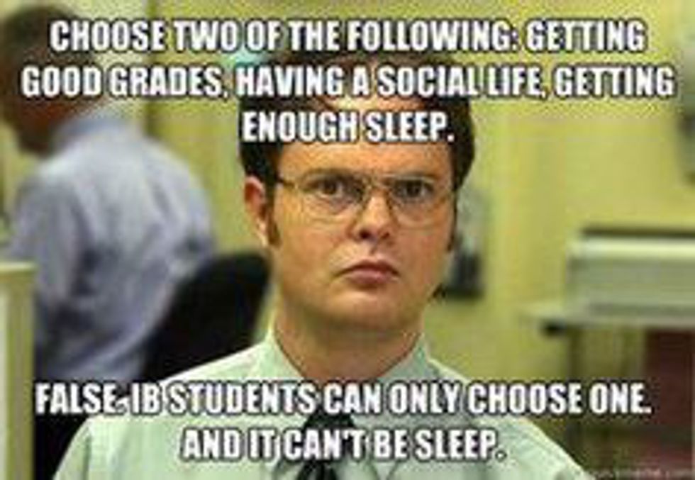 Oh yeah, you remember what sleep is? Well, forget it, because you’re not getting any of it! Seriously, there are times when you have so much to get done and so little time to do it. No wonder IB kids doze off and bounce awake in class. We’re not bored, we’re sleep-deprived! Many times, an IB essay has been turned in, stained with tears. IB definitely gives you a new appreciation for sleep!
