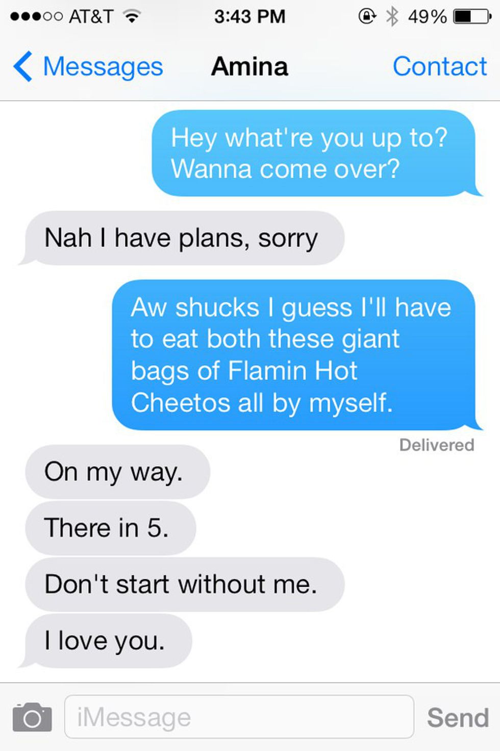 9. Sometimes, you don't want to go out if Flamin' Hot Cheetos aren't there.