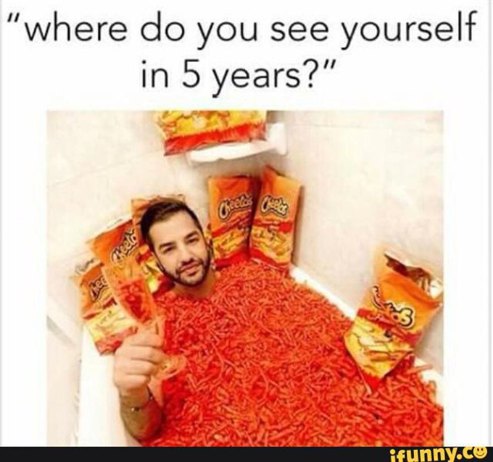 Sometimes you just gotta go face first into that bag of Cheetos you know?