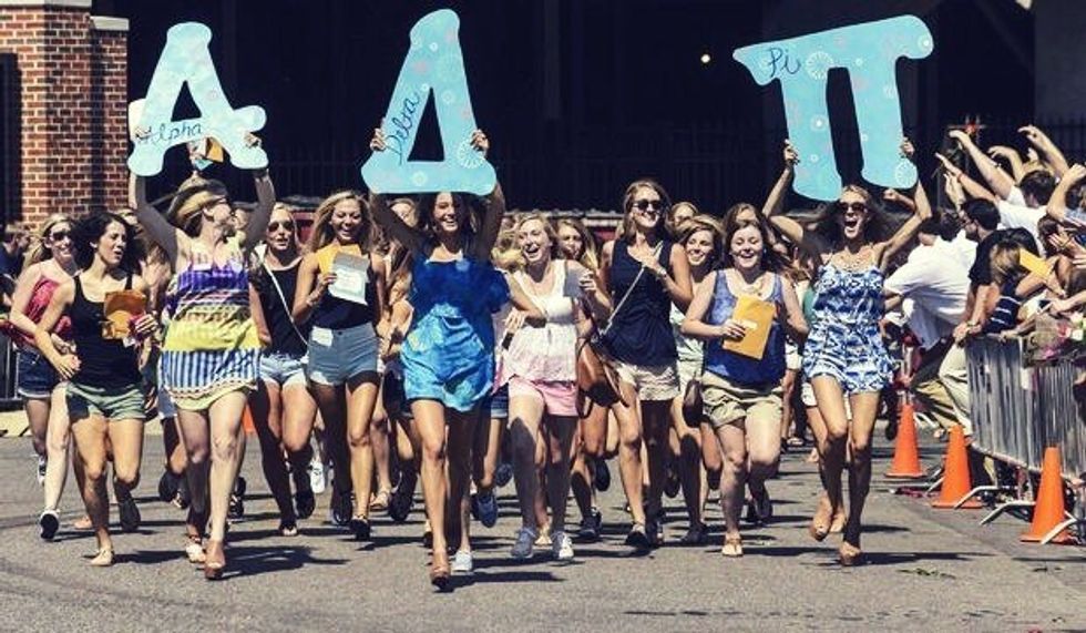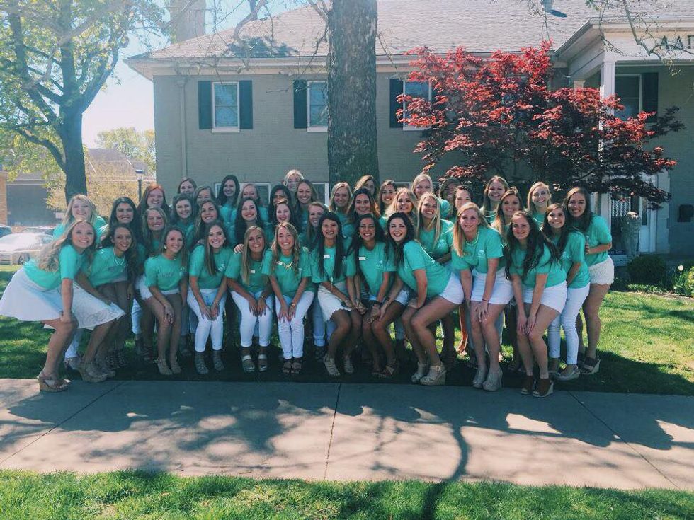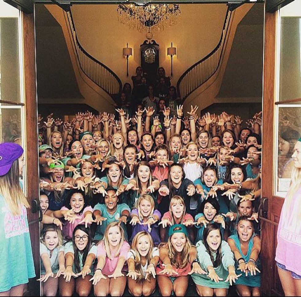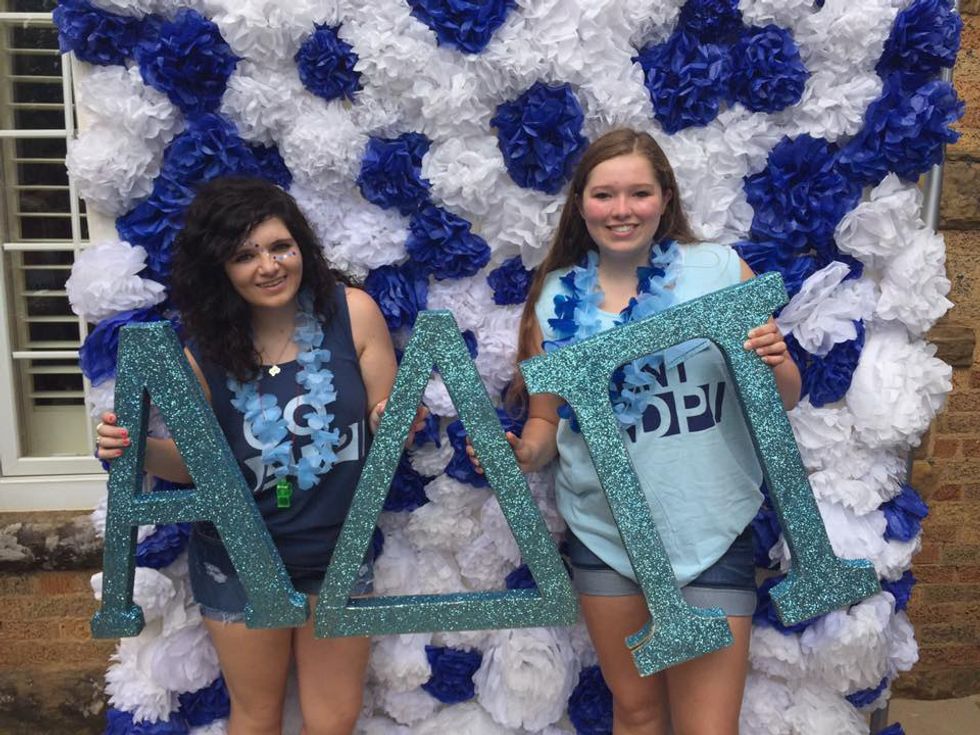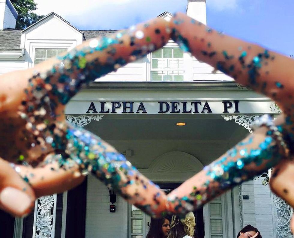 Wearing blue and white and throwing the diamond signs, and making girls jealous that Luke Bryan is into ADPi's. If you are a member of Alpha Delta Pi, you can easily relate to this. Also, happy 165th year of sisterly love and loyalty! Thanks, Eugenia!