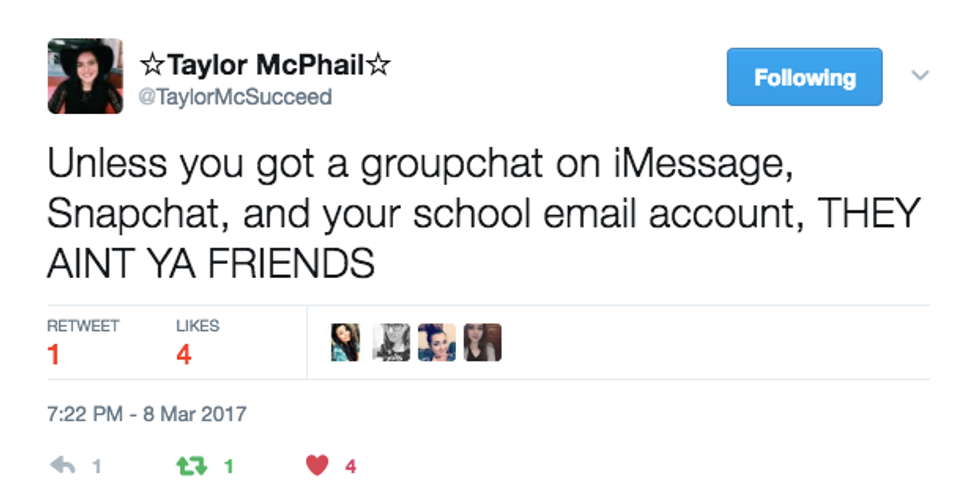 Sick, boy problems, etc. Doesn't matter what it is, the squad is there for you.