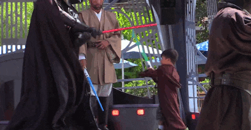 Watching a Jedi Training Academy video, you recall that special moment when the Jedi master picked you out in the crowd, gave you a robe and lightsaber, and taught you how to battle the forces of evil. Darth Vader, escorted by an entourage of Stormtroopers, challenged you to a one-on-one duel, and, summoning the force, you defeated him and made your Jedi master proud!