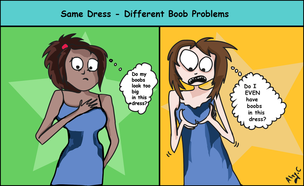If they're big it's hard to find bras that are cut and that are still supportive. Bralettes are also a no go for large chested ladies. If they're small, it's hard to wear dresses or shirts that require a little bit to fill it out. They're actually the worst.