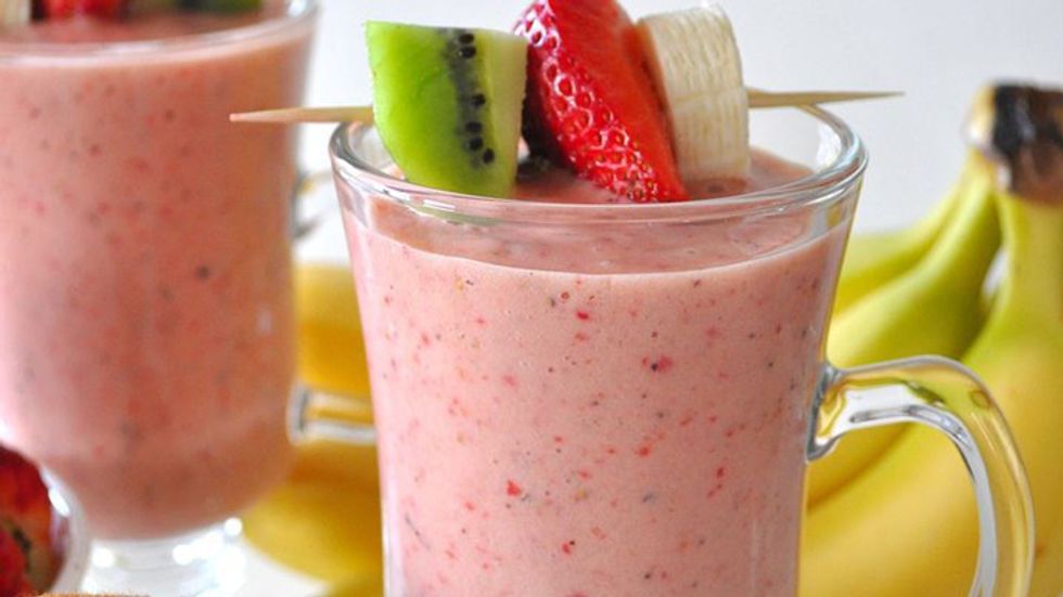 Everyone loves a good smoothie, especially now that it is summer! While most people own blenders, they never use them and prefer to buy a smoothie at a store rather than make them. But smoothies are one of the easiest things that you can make! They only require a few ingredients, literally like three or four, that you most likely have in your kitchen. They don't require any preparation either; you just throw the ingredients into a blender and in less than a minute you have a delicious drink! And they're a great way to use that summer fruit that you keep buying! Here are twelve healthy and super-easy smoothies to enjoy this summer: