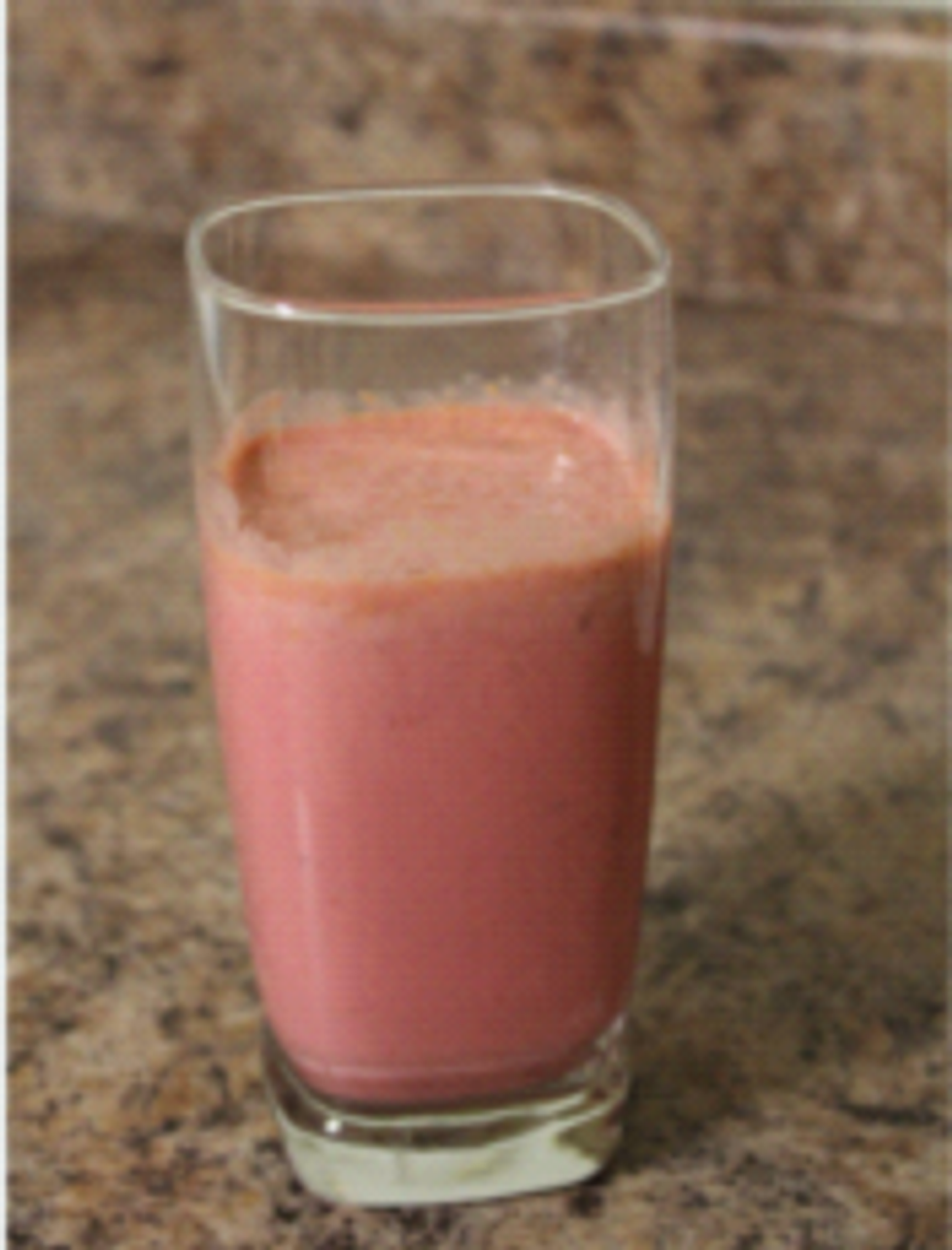 Directions: Put all of the ingredients in a blender. (If raspberries are frozen, let them thaw before you put them into the blender to make it blend easier.) Blend on medium for twenty to thirty seconds, or until smooth.