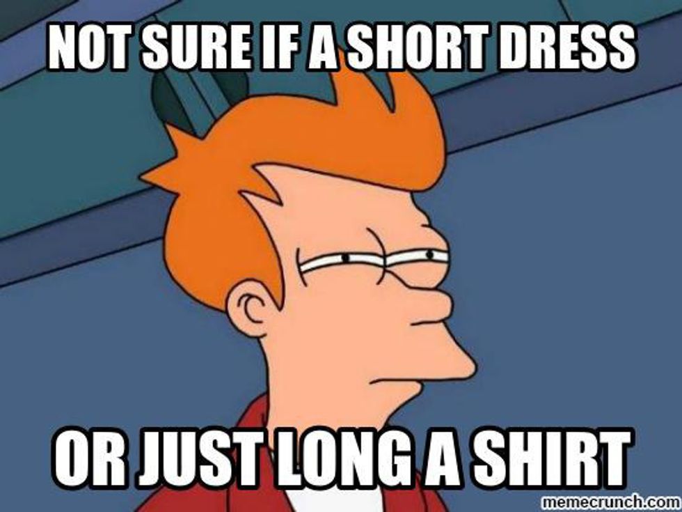 I have the ability to make a dress look like it could be a shirt. Shopping for dresses is a nightmare, because I have to make sure it's long enough where I don't look trashy.