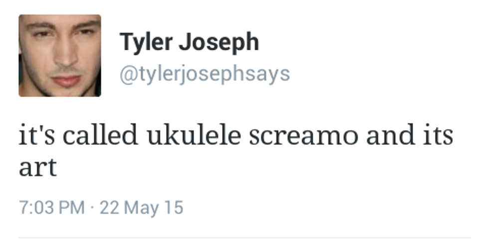 Most of the time, the music of the duo will consist of drums, piano, synth, bass guitar, and the ukulele. However, their is a rare occurrence when Tyler ditches the piano and big productions and just picks up the ukulele, and the result is amazing. Not only are these versions simplistic and calming, but easy to play for those with their own tiny, four-stringed guitar. If you ever find yourself bored on a warm day, throw a youtube playlist of these tracks on and enjoy.