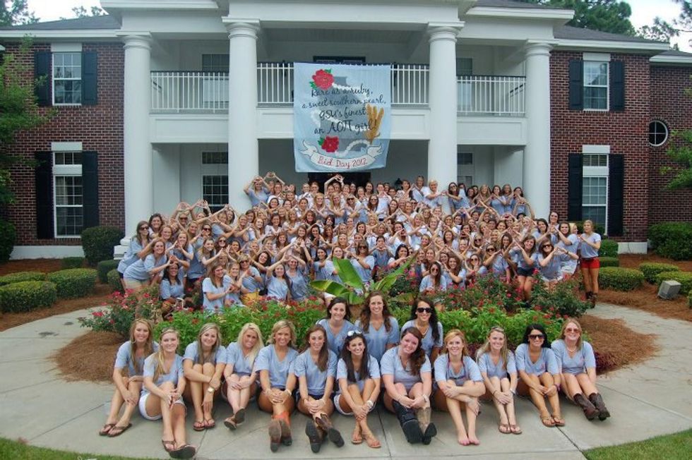 After joining a sorority, instead of a go-to hand on the hip pose for photos, you "throw what you know" with whoever you know around you. Along with the occasional sorority squat for photos.