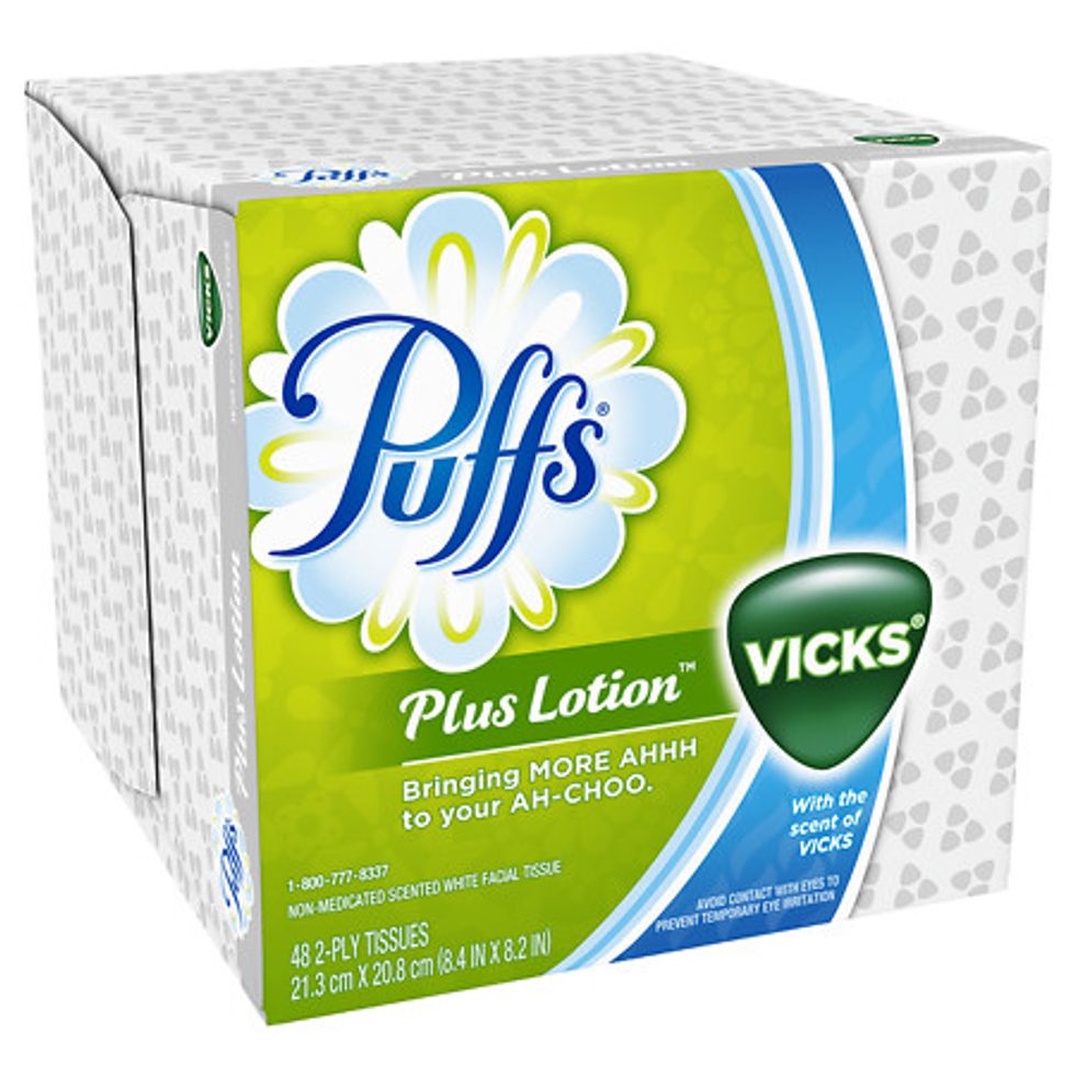 I was always a huge purchaser of Puffs+ lotion, but these are even BETTER. They're Vick's scented Puffs + Lotion tissue, also known as the best of both worlds. They manage not to rub my nose raw, and also work on clearing out my sinuses. I go through probably 3-4 boxes of these a semester. Even if you're not perpetually sick, these are great, even if you don't have to use them all of the time.