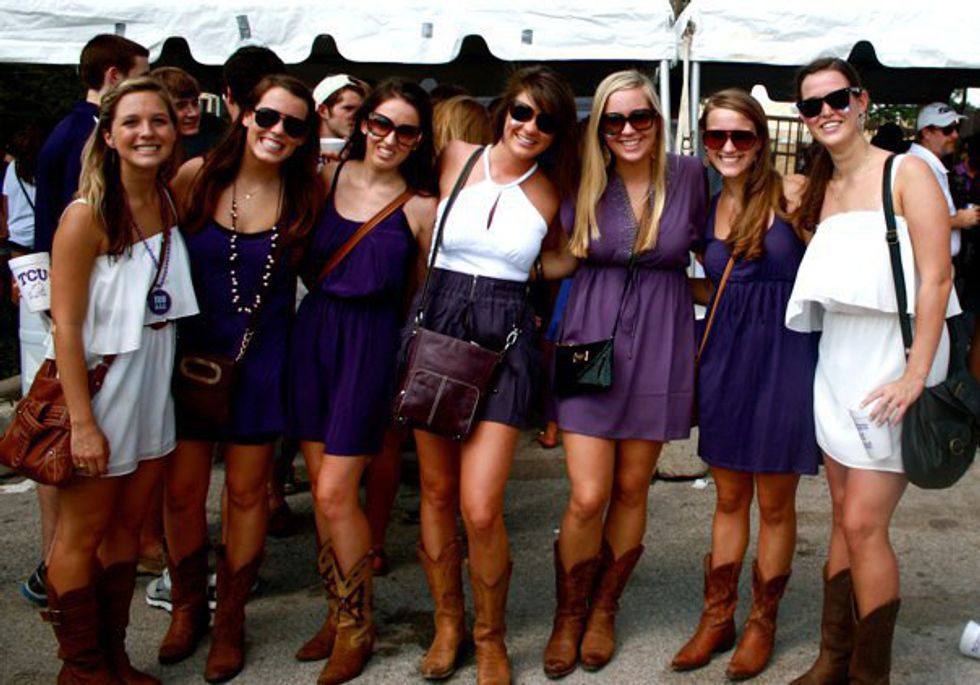 When you go to slip on some shorts and your favorite team's t-shirt, you promptly stick out like a sore thumb... especially during pre-game tailgating! I guess no one informed you that the Southern college girl football game uniform is dresses and cowboy boots...