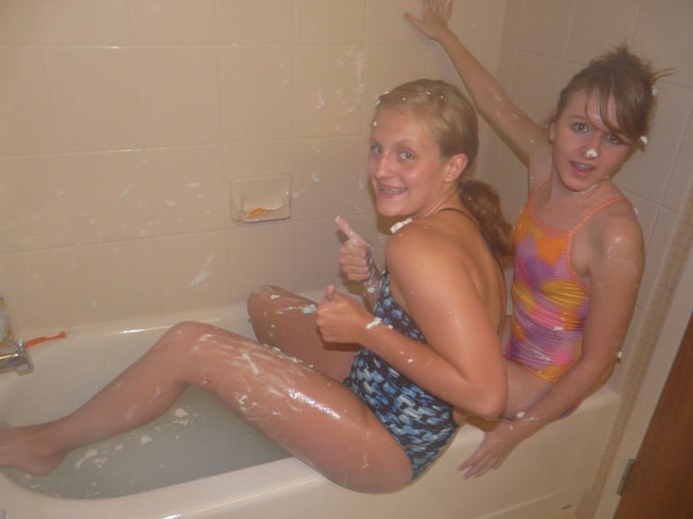 Swimming can be a very challenging and cut throat sport. You literally stare at a black line on the bottom of a pool for hours a day. You always smell like chlorine and your hair is wet in every picture ever taken of you but you wouldn't give it up for anything. Swimming has allowed you to foster some of your best friendships. It has taught you to be hardworking and to rely on yourself. After all, at the end of the day it is just you and the clock. Swimming gave you an outlet; you knew that no matter how bad your day was, a couple hours at the pool would solve any problem. You are thankful for what this amazing sport has given you – memories, discipline, and the ability to win any breath-holding contest ever.