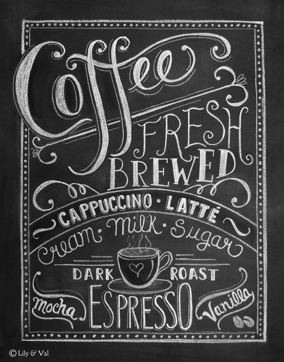 6. Artwork: A nice print that describes all the types, benefits, or characteristics of cofee is a nice reminder for an office, bedroom or kitchen