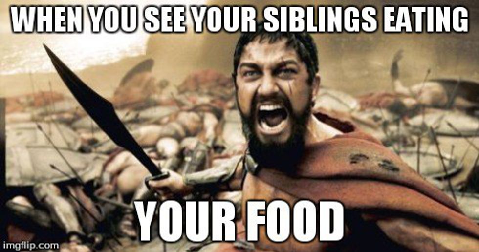If you want to eat, you have to hide food in the fridge or cabinets, mark your territory with your name in huge letters with a permanent marker, and threaten every person in the house- and even then, you're not guaranteed it will be there when you get home. There's a 50% chance your siblings pretend they didn't see your name on it and eat it anyway. In moments like this, it's hard to not completely lose your shit, so you learned self-control the hard way (some of us are still working on it).