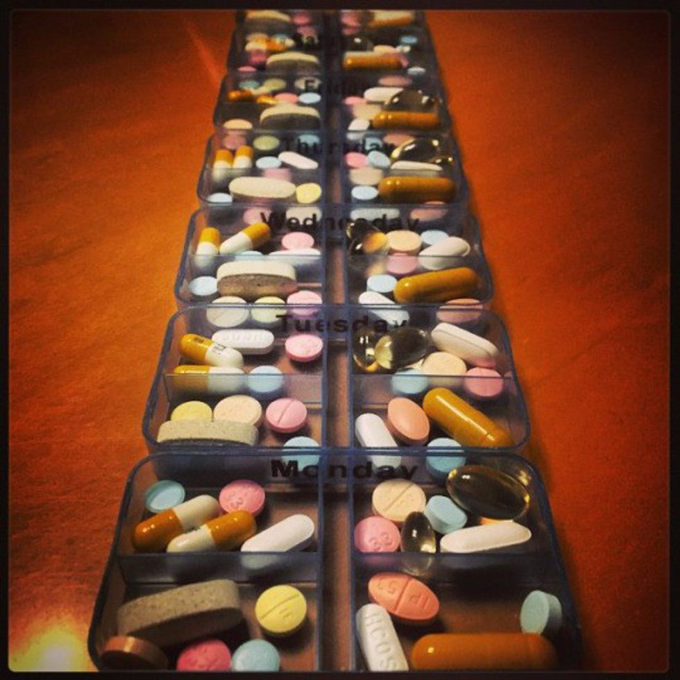 8. According to the CDC, the average person with Lupus takes between 7 and 9 medications. Many of those medications require multiple pills. It is not uncommon to see a pill case like the one below.