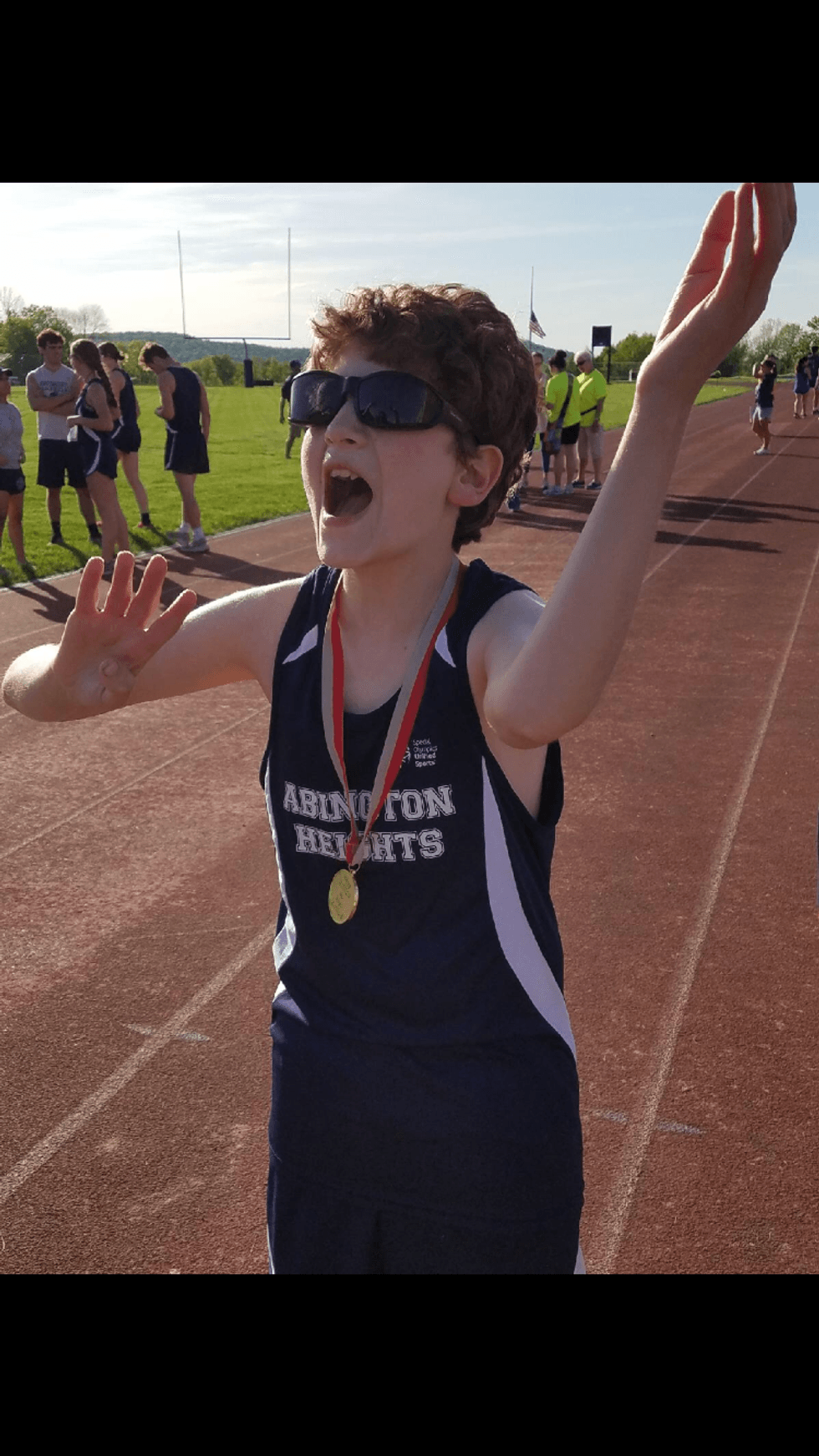 Ronnie's track team won first place this year. He looks anything but sad in this picture.