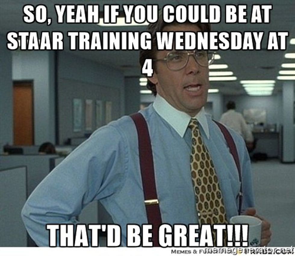 1. If the calendar reads "Mandatory STAAR Training," you better believe I'll be taking a snack and mentally prepare myself for the next 1.5 hours.