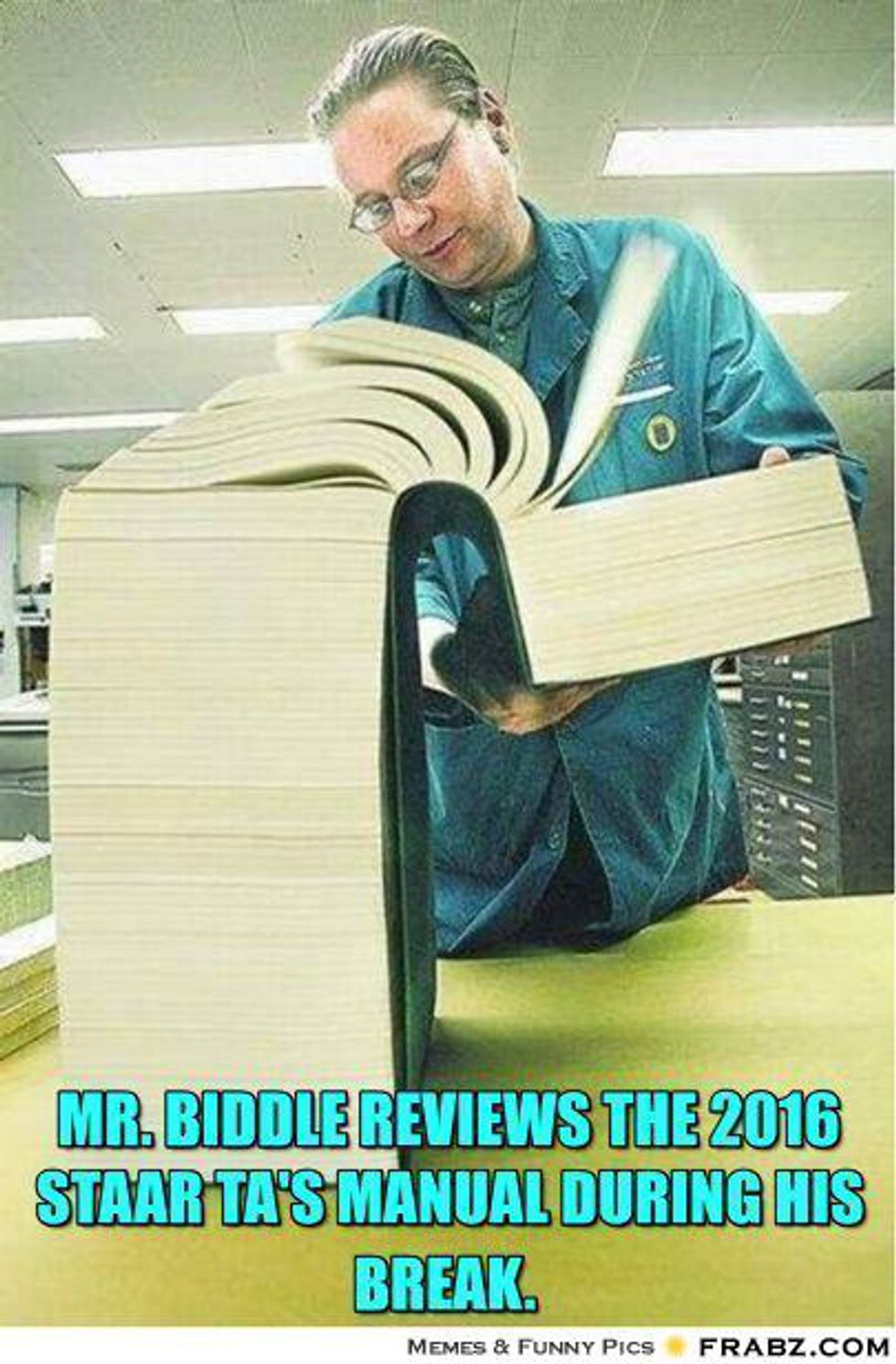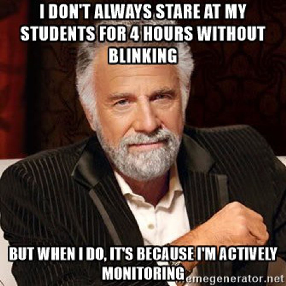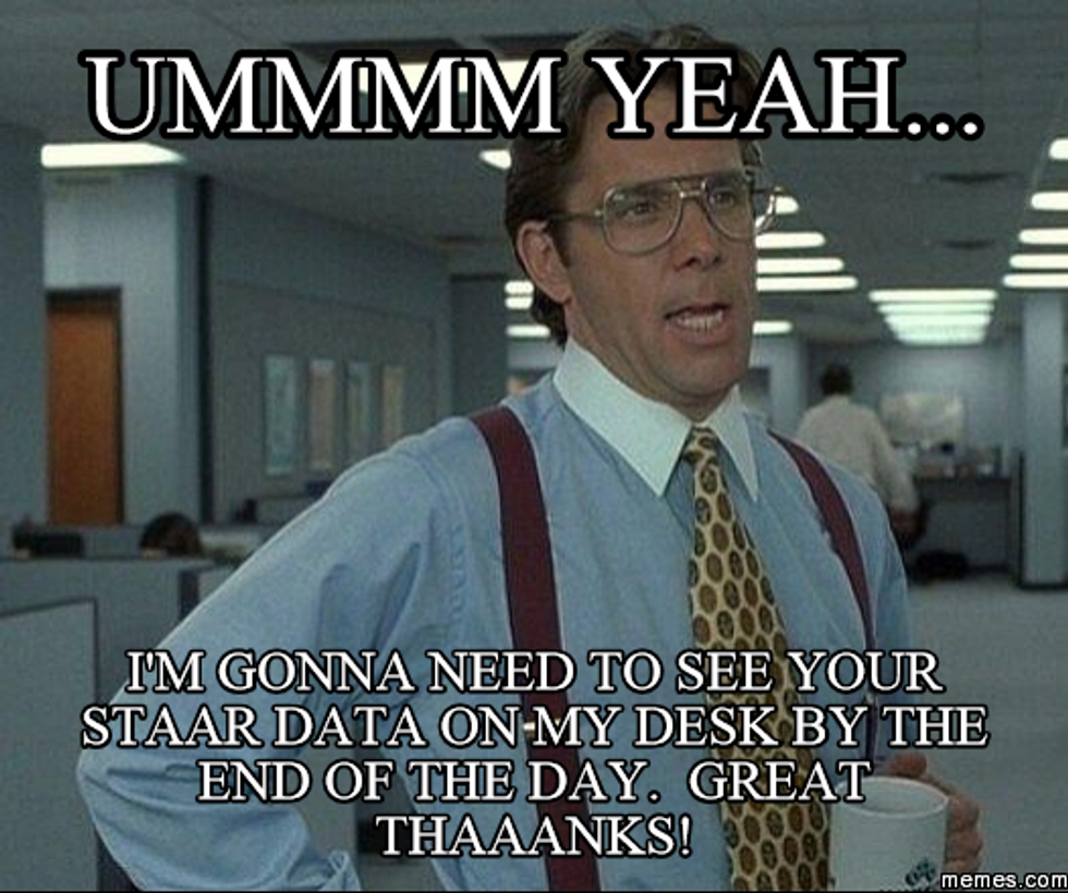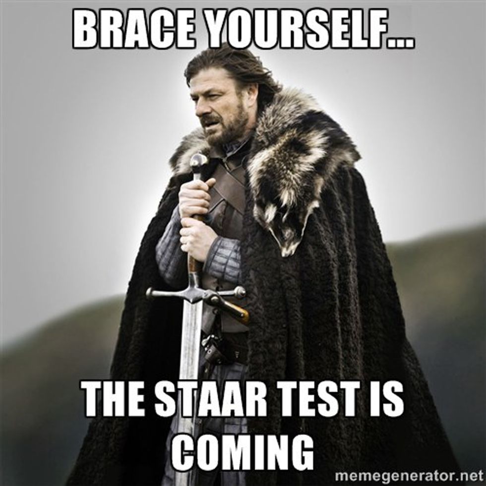 The months of April and May are both known as testing months for most Texas teachers. This is when students all across the state are required to take a standardized test that will ask them to recall all that they have learned throughout the school year. No pressure, right? However, this test is not one that only comes as a minor menace and concern for students, but for teachers as well. Teachers not only have to train for the administering of this test but also have to concern themselves with the possibility of an irregularity...aka, a big no-no. So when a teacher sees STAAR test on the calendar, the following thoughts may come to mind: