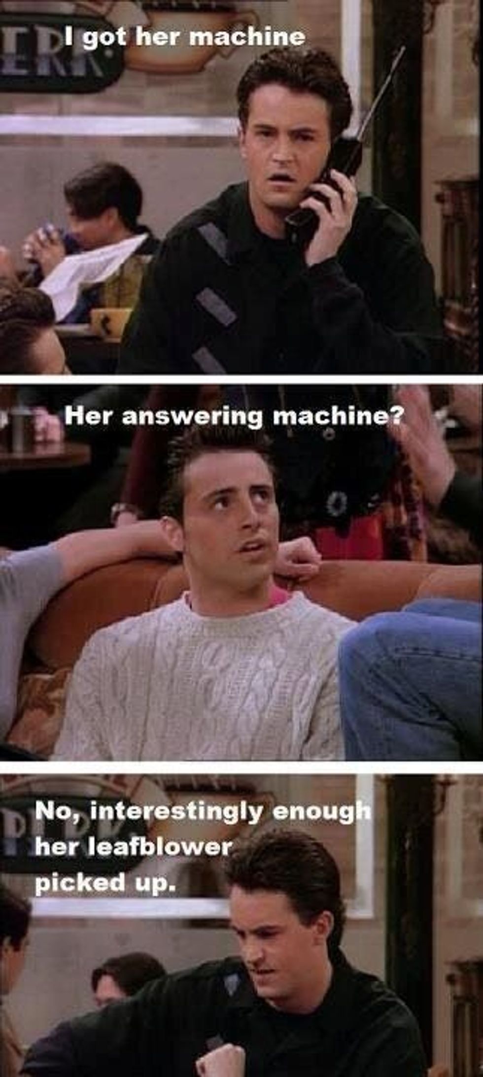 And lastly, though it wasn't as much quick wit as much as it was my favorite Chandler Bing moment:
