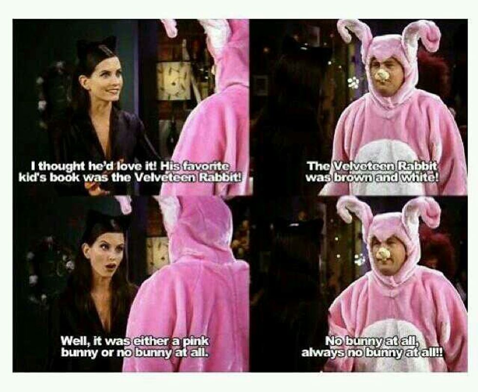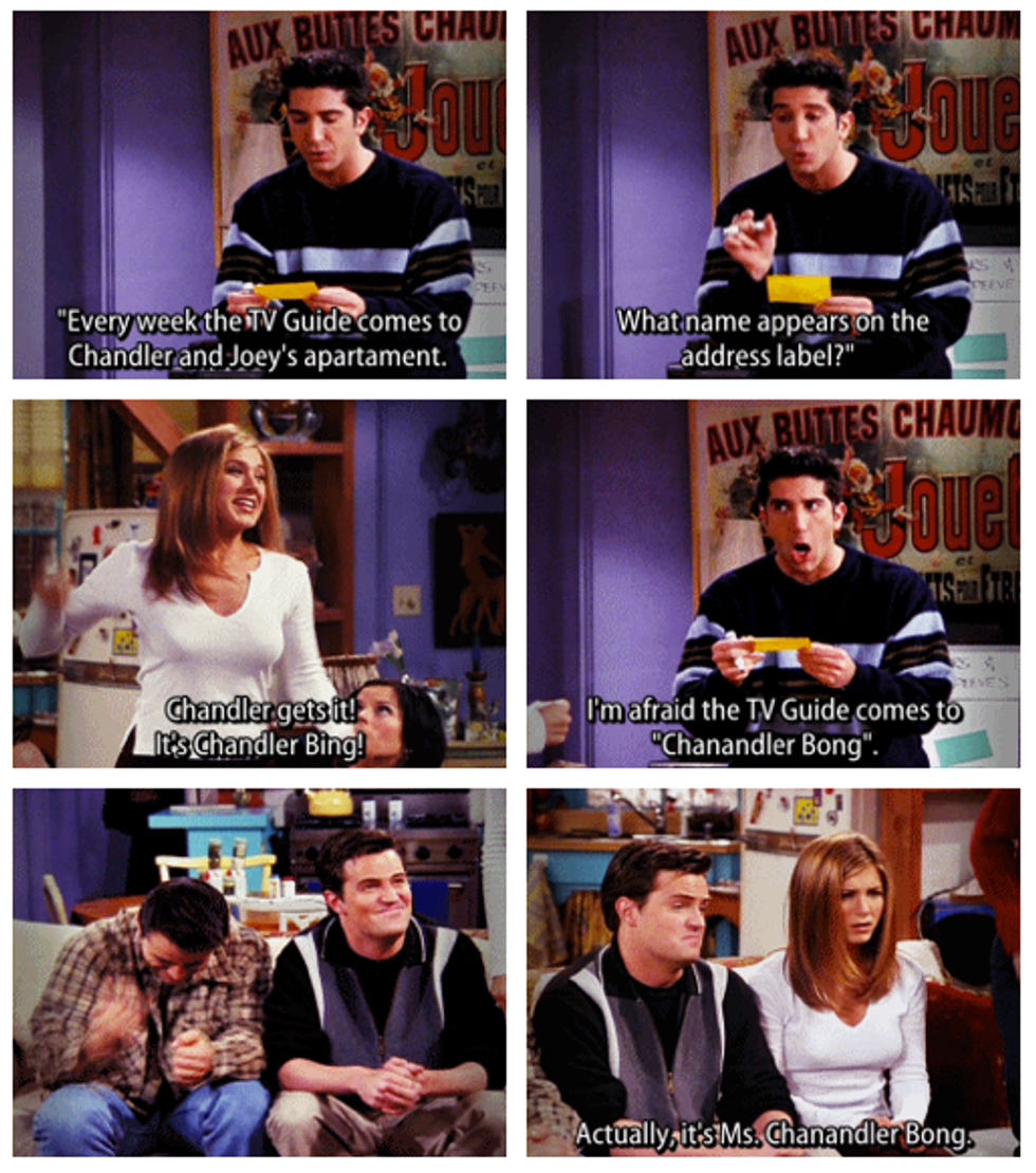 My personal favorite character and a key component to the show's comedy through his quick wit and sarcasm. With that being said, here are some of the most memorable one-liners from Chandler Bing himself.