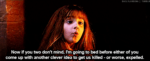Recently, my roommate finished all of the Harry Potter books for the very first time. Obviously, that feat called for a celebration and by celebration, I mean "watch all of the Harry Potter movies in a row until you've developed a British accent and have a strong hankering for butterbeer." Unlike my roommate, I have seen all of the movies too many times to count, but it's always nice to go back and relive the magic. In doing so, I have found that, with every showing, you can discover more and more tiny details that make the film even better (or sometimes even more amusing). One thing that is always prominent though, is how stinking cool Hermione Granger is. Just in case you don't know, I have complied a somewhat complete list (there are really too many times to really count) of the times that the Hermione has been the toughest cookie in the world.