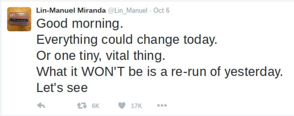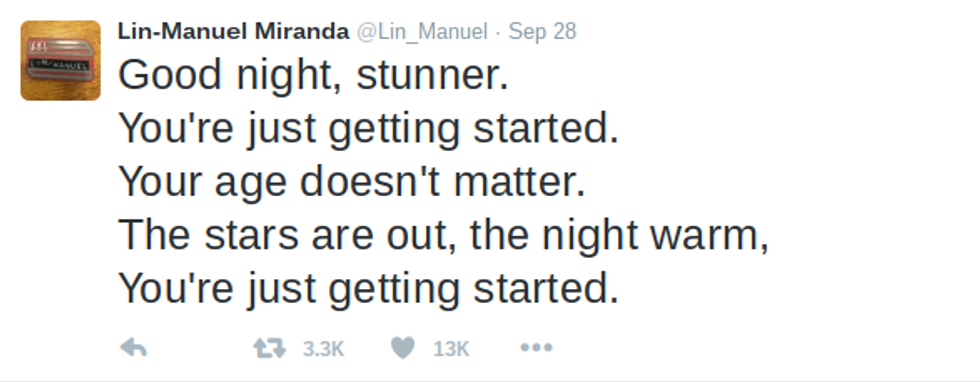 Lin-Manuel Miranda, genius creator of Broadway hits such as Hamilton and In the Heights hosted this week's episode of Saturday Night Live. Despite being an extremely talented composer and freestyle rapper, he is quite the wordsmith on social media, specifically Twitter. With about 848,000 followers and over 39,000 tweets he has built quite the standing on the internet. These are just a few of the gems that can be found on his account.