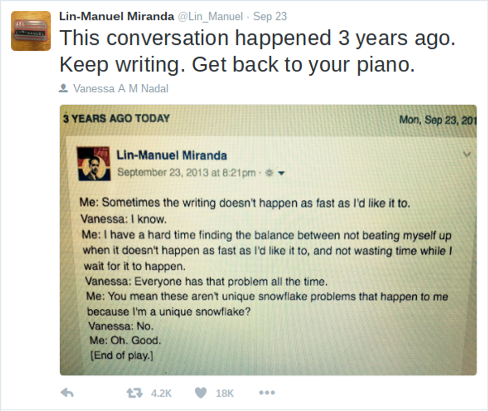 Bottom line, Lin-Manuel is a gift to Twitter and to humanity. His posts are inspirational and extremely uplifting.