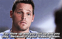 "Let's say you were drafted to a team that wasn't your first pick. You know, you don't like the players. You hate the way they play the game. You even think the quarterback is full of crap. The quarterback's a pain in the ass you don't owe a damned thing to. But, it's your team. You don't quit. You don't talk to the press. You don't bitch to the coach. You just, you just go out there every Sunday and you make the blocks and you take the hits and you, you play to win. You show up and you suit up and you play, because it's your freaking team."
