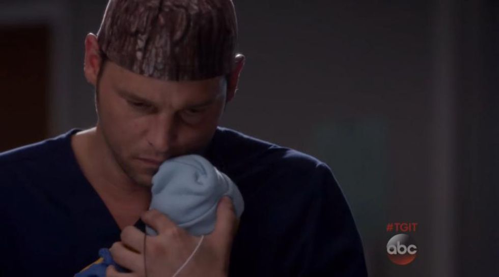 In "I Choose You" (Season 12, Episode 2) when Karev knew that a baby in the NICU wasn't going to make it, so he took off his gloves and mask and held the newborn in his arms while he died. Just like the doctors viewing the surgery from the gallery, we got choked up too.