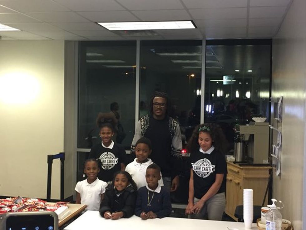 Pairing with local high school football teams and donations, Carr provided over 250 full Thanksgiving meals for struggling families in the Dallas area.