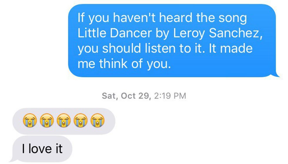 "This song holds so much weight," she had told me. It means something. All the way across the world, living in Germany and training as an elite athlete, she had changed drastically over the past year. The same could be said of myself after leaving for college this July, and the majority of my thoughts lately have been constantly plagued with doubts about whether or not I made the right decision to move so far from everyone I loved. I pulled up the song on Apple Music that night and Sara Bareilles' voice encompassed me. Music has always had great power over me, something that could flip my emotions like a switch and speak a whole new meaning into my life. That was exactly what I experienced as these lyrics unfolded. Every word fit somewhere, spoke to who I was and who I am.