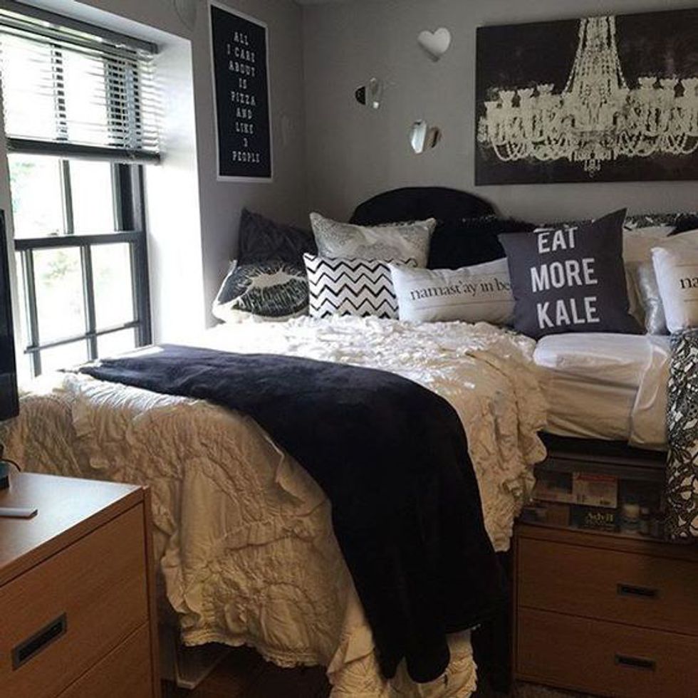 If you're anything like me, you've spent the majority of your summer browsing Pinterest to find neat little decorating ideas for your college living space. And if you're really like me, it doesn't matter if this is your first year or your fourth year in college. Every year you look for new and exciting ways to give you a cool or chic new room. So for those of you looking for some inspiration, here are 12 ways to get a Pinterest-worthy college room. All of these images and ideas can be found on my "Apartment" Pinterest board. You can check it out and follow me for more inspiring ideas here.