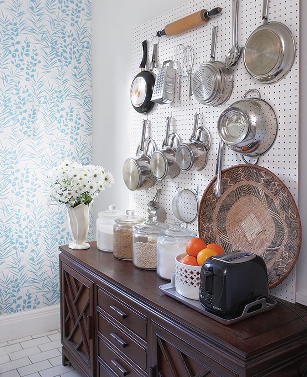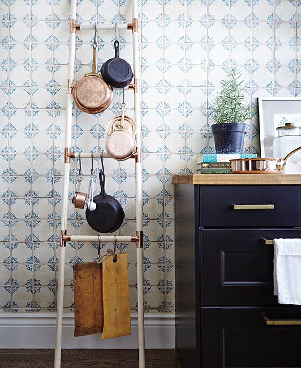 Not only your guests will see how good of a cook you are, but this also makes as a form of wall art....right? All you need is a cork board with holes and some hooks.9. Or you can use a ladder for it (again...)