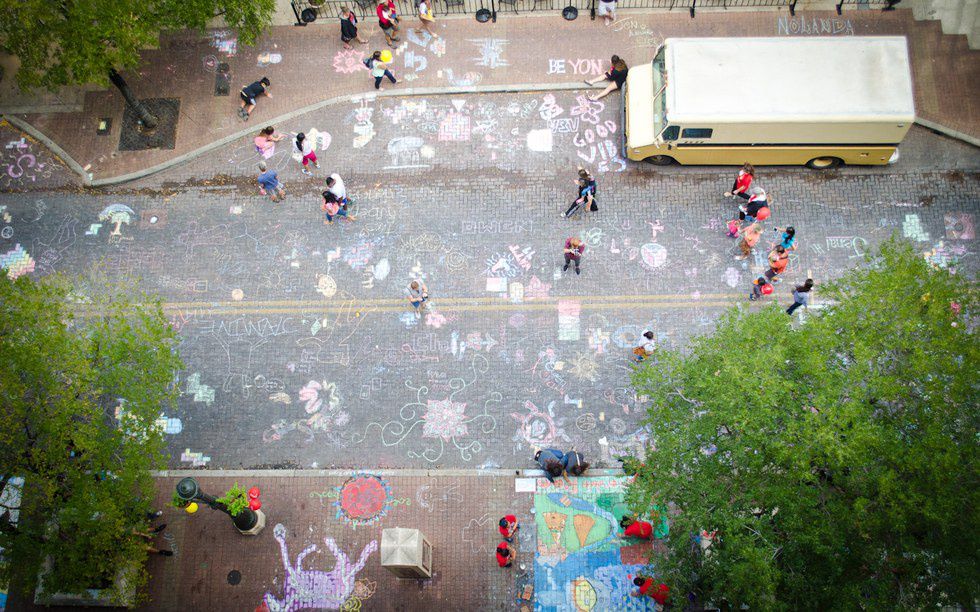 2. For the super crafty kids, make your mom a cool mural with chalk.