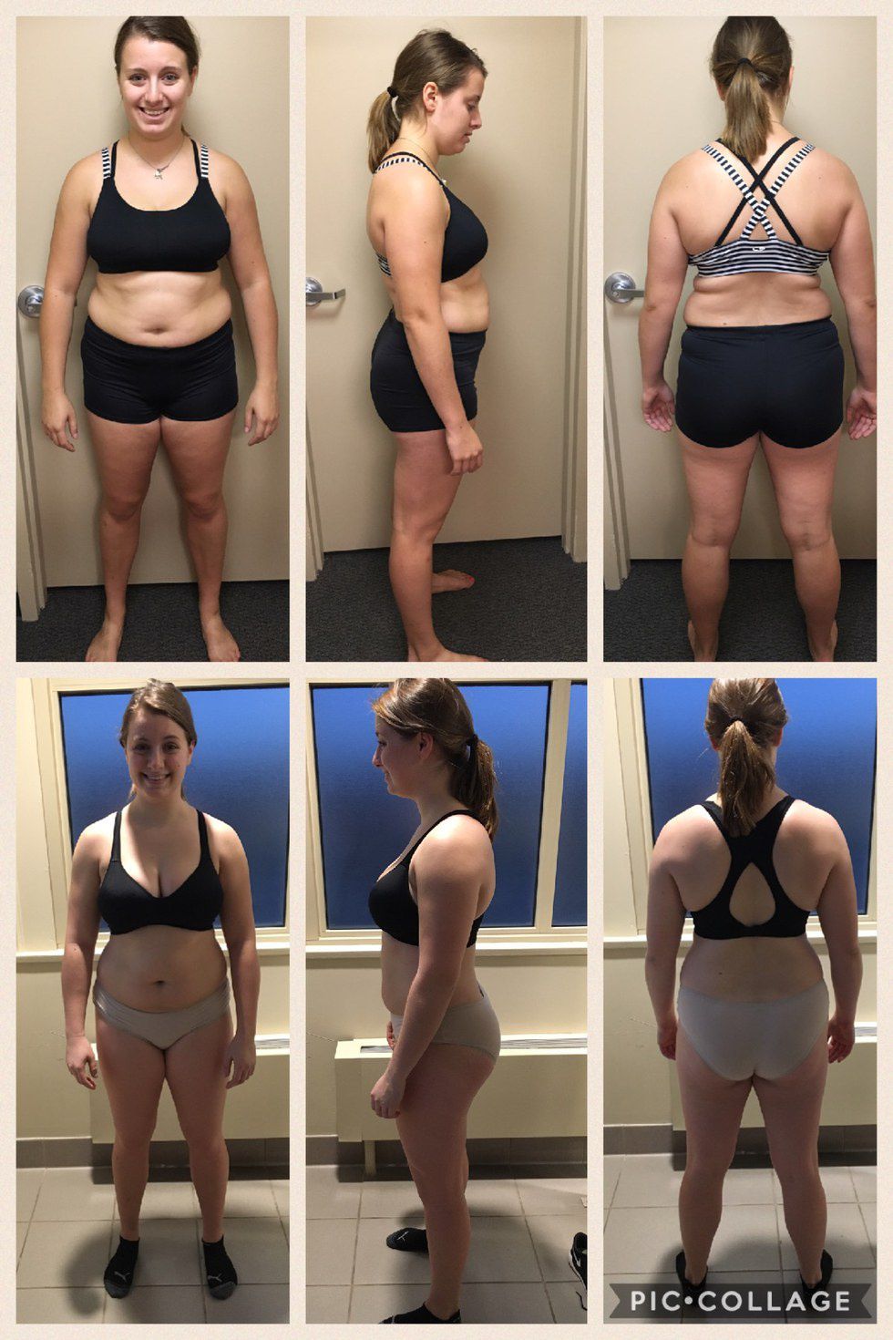 The photos on the top are the pictures I took the day before I started the program in September. The photos on the right are from last week Tuesday (excuse the bad lighting and lack of makeup).