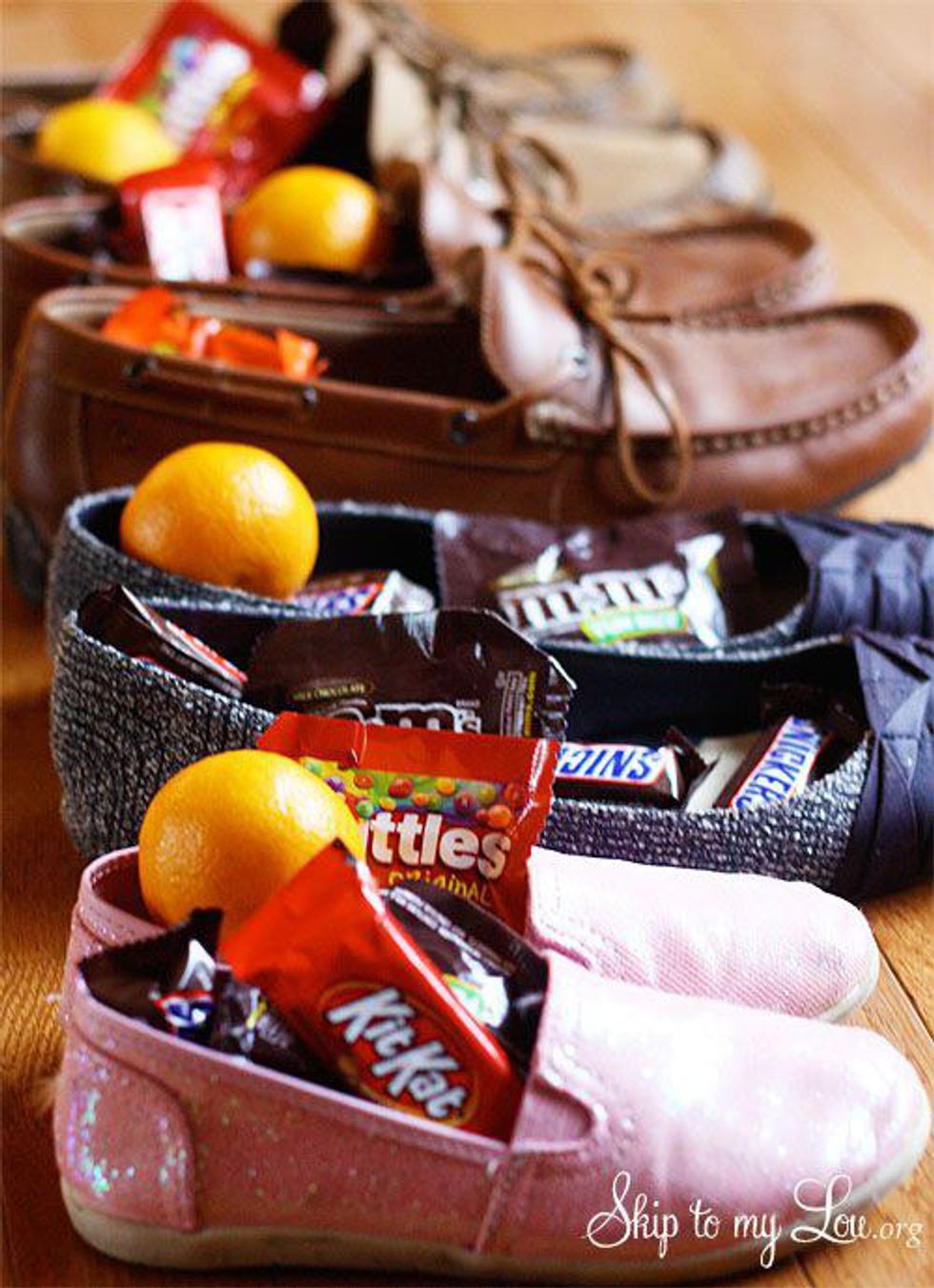 Children in Iceland and the Philippines leave one of their shoes out on their bedroom windowsill every night during the 12 days of Christmas for Icelanders and all the way until January for Filipinos. Each morning children find it is stuffed with gifts and sweets ready to enjoy.