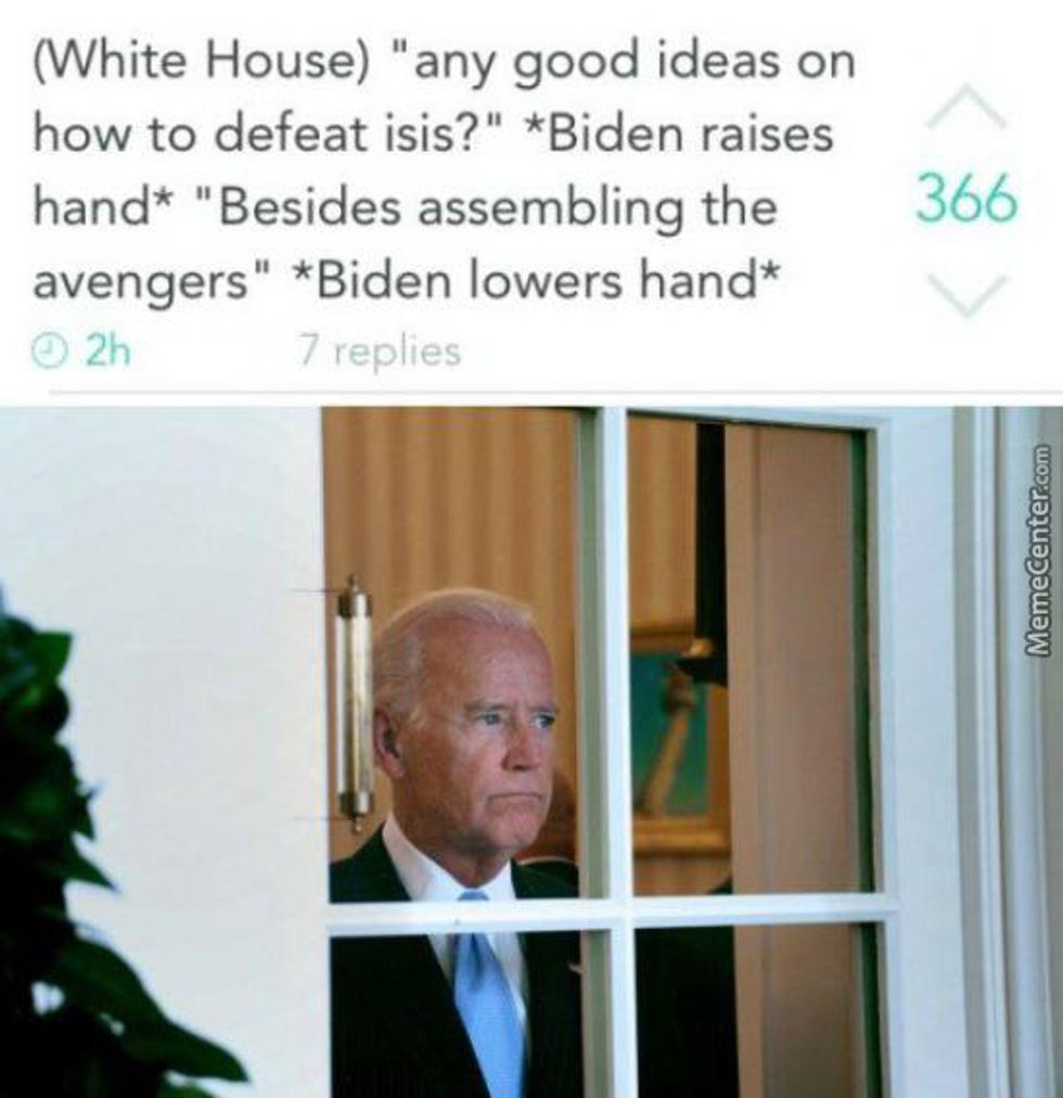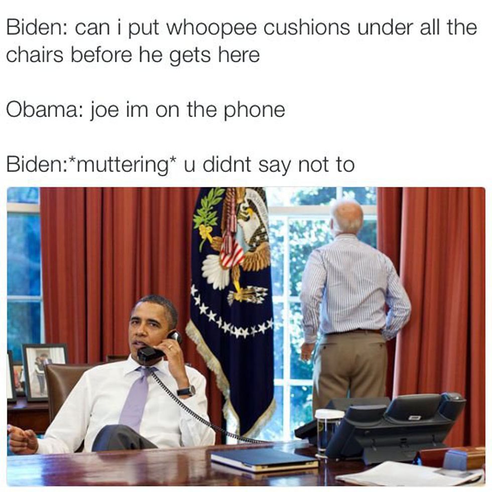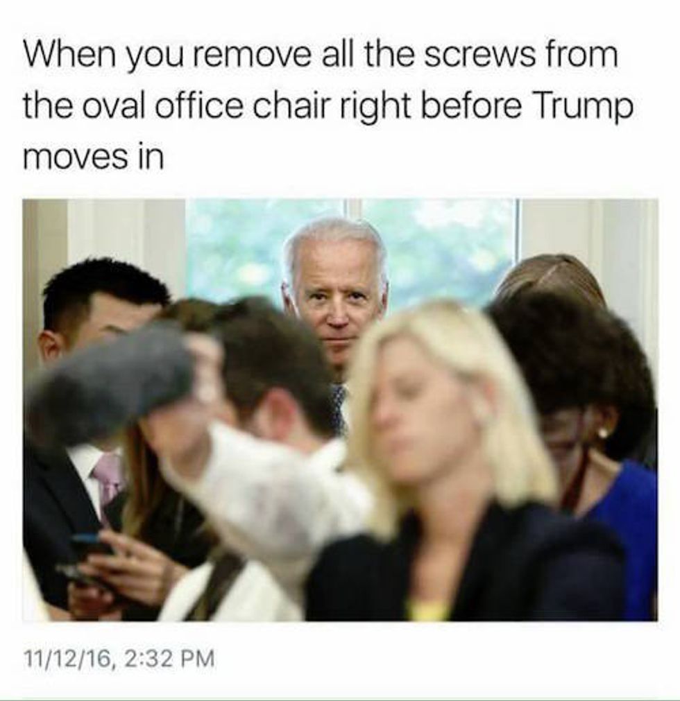 Fortunately, we have a beacon of hope to keep us from drowning in our tears as we mourn for a country that is royally screwed. They are memes of our vice president, to whom, at one point in time, I would have texted "Wyd" at 1:47 a.m., but this is a modern-day Shakespearean tragedy. Here is proof that a young Joe Biden should have been People's 2016 Sexiest Man Alive (sorry, Dwayne), and more importantly, 13 memes that will give you life.
