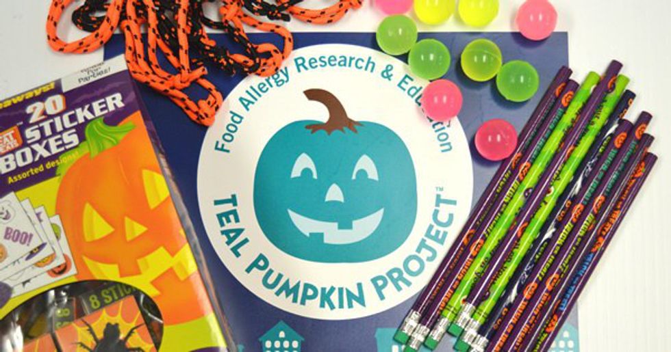 Inspired by a Food Allergy Community, the teal pumpkin is a beacon of hope to trick-or-treaters who have food allergies. If you paint a pumpkin teal and place it close to your door, you are agreeing to hand out alternatives to food, such as toys, jewelry, school supplies, or toothbrushes. By participating in the Teal Pumpkin Project, those who come in costumes will know that they can safely enjoy Halloween at your house.