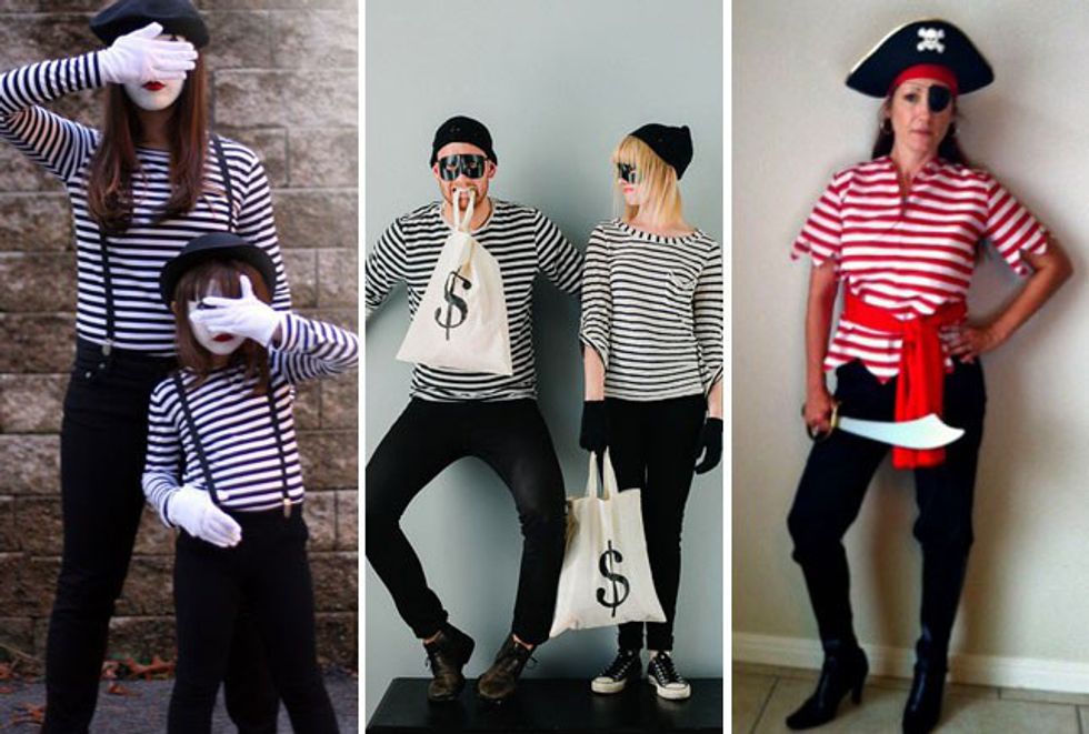 Have a striped shirt? Mime, robber, or pirate. Have a flannel? Lumberjack. White button down? Mary Poppins or "Risky Business". Black dress? Any celebrity ever. Leather jacket? Greaser, punk, all-around bad-ass. You got this.