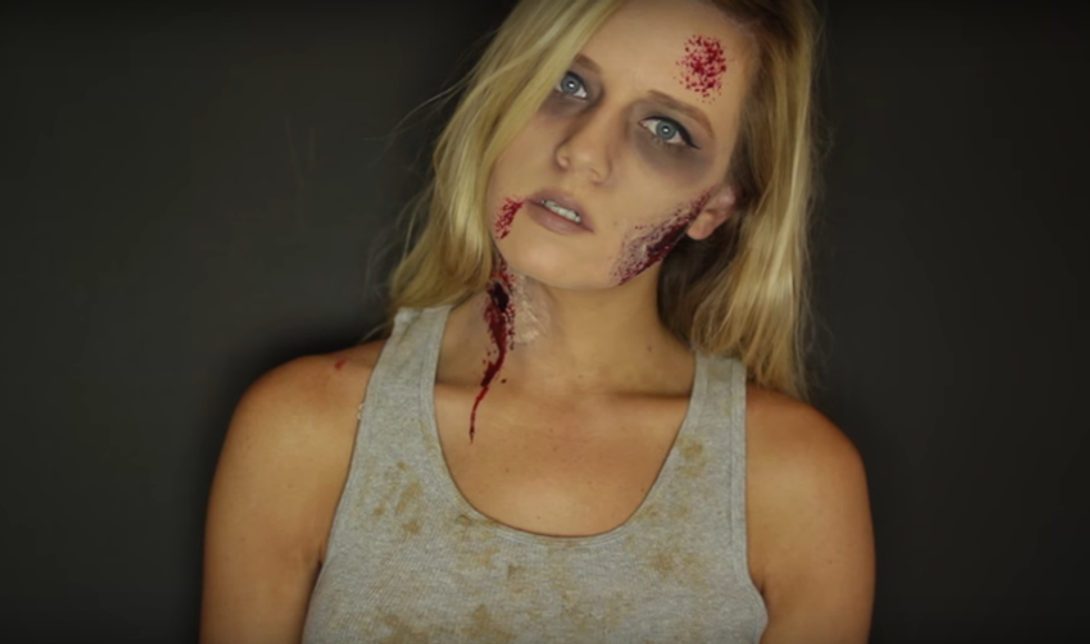 Fake blood can get expensive, especially if you're buying from Halloween stores that know they can jack up the price of everything you need. You can make your own with a shaving of red lipstick, creamy black eyeliner, and a clump of liquid lip gloss.