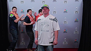 4. When he photobombed football fans with Chris Evans and Jimmy Fallon.