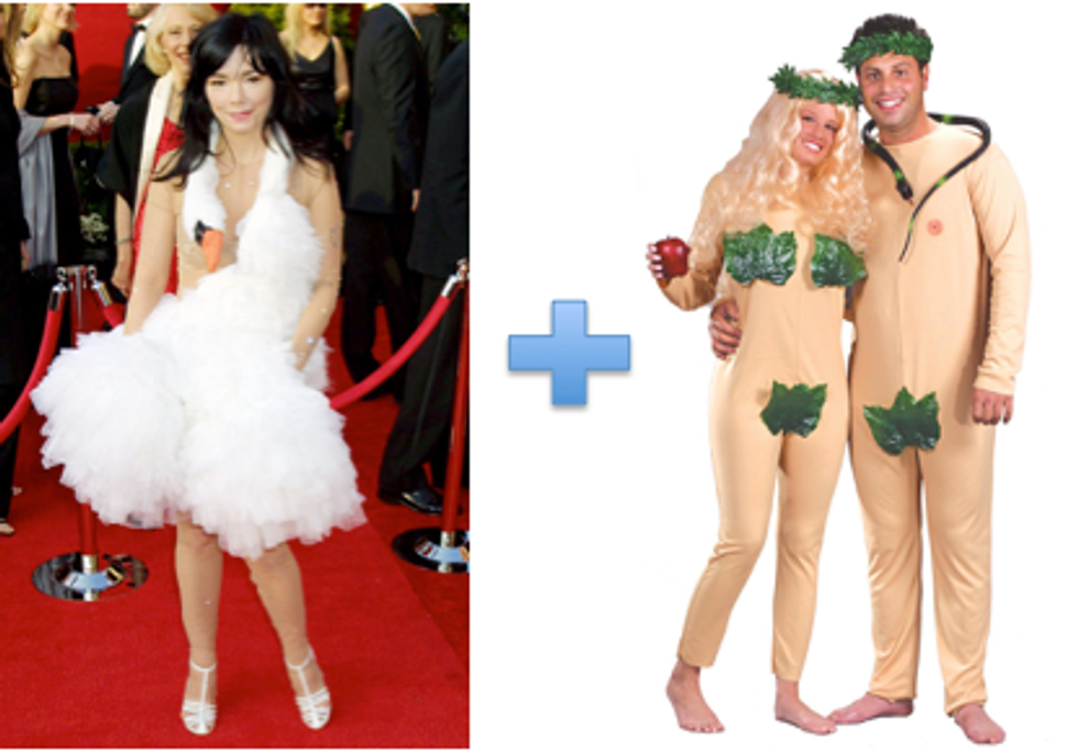To bring this costume to the next level, layer the word play! Dress simultaneously as swans, and the biblical characters to which their names allude. See the comprehensive diagram below for inspiration.