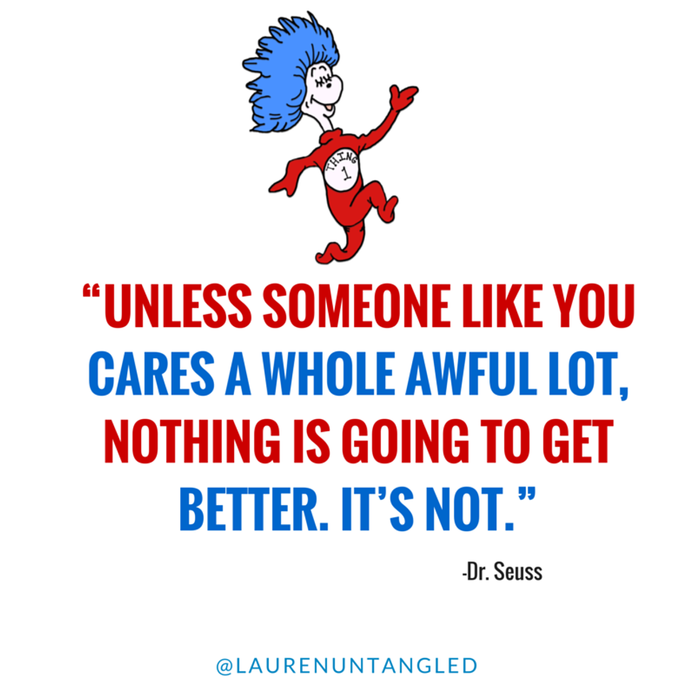 5. “Unless someone like you cares a whole awful lot, nothing is going to get better. It’s not. “For the world to change, it takes someone caring enough to make a change. Why can't that someone be you? You can make the world a better place!