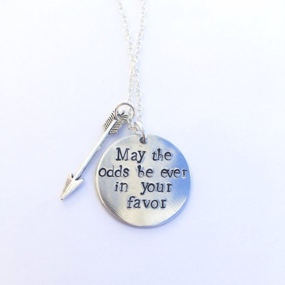 Etsy jewelry, like the "Pride and Prejudice" and "Hunger Games" necklaces above, is the perfect way to bring a little bit of someone's favorite story or character into their everyday life.