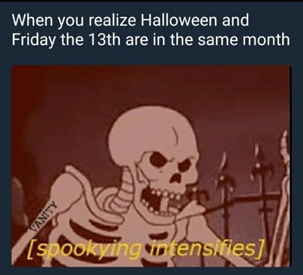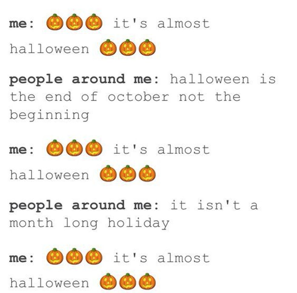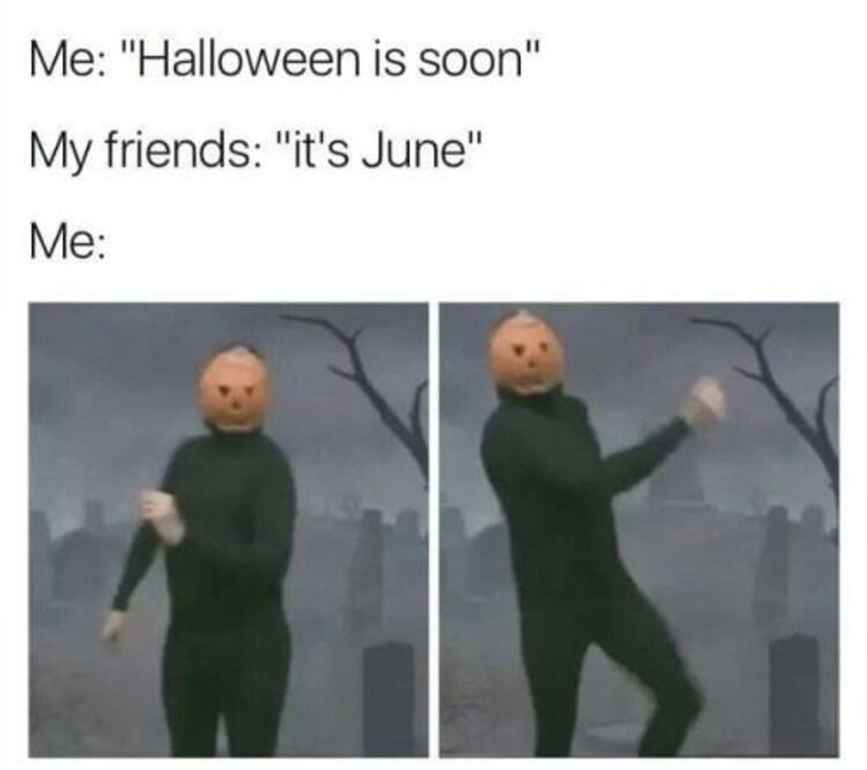 Not everyone is as in touch with celebrating Halloween during the whole month of October, which is okay. They don't understand it like we do. They don't feel the same rush of chills as we do when we watch those classic Halloween movies, or carve pumpkins, or put up decorations, or find the perfect costume, or bake those little Pillsbury sugar cookies with the pumpkins on them. Not everyone may understand why we love Halloween so much, but they can still appreciate the meme culture that Halloween brings to the universe. So, without further ado, enjoy these 13 ~spoopy~ memes that will definitely put you in the Halloween spirit!