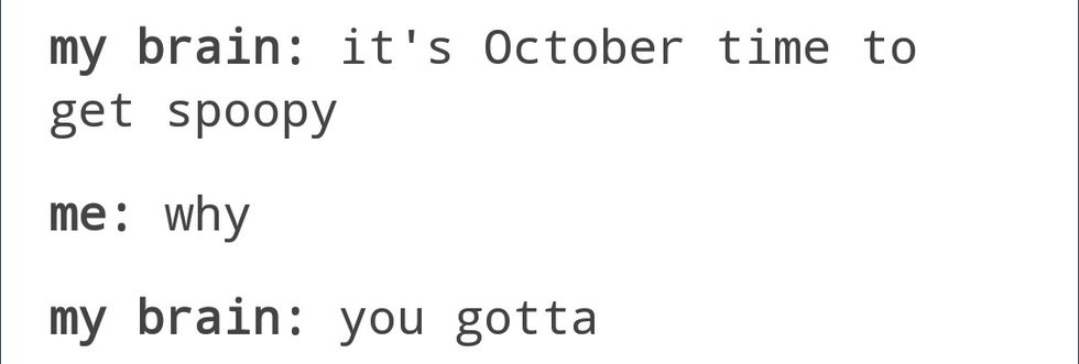 See, it's not even something I can control. It's chemically hardwired into my brain that as soon as October is here, I have to get spoopy.