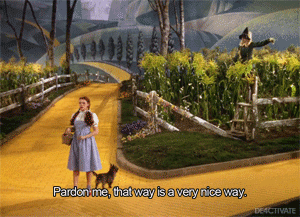 Careful, Dorothy! Choose the wrong path and you could end up a dirty, STD ridden harlot like the Wicked Witch of the West. Why do you think she's on that broom all day?